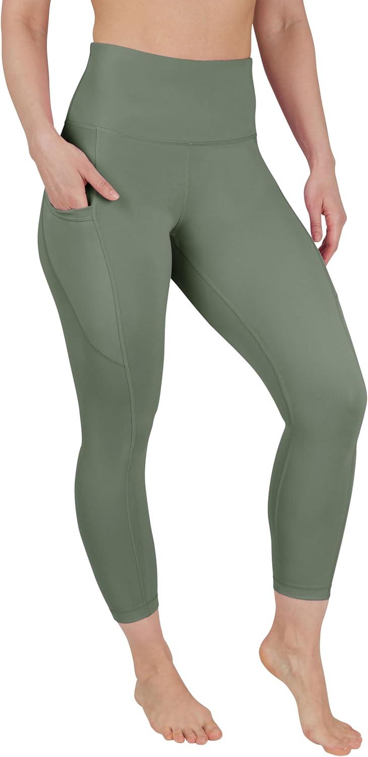 image90 Degree By Reflex Womens High Waisted Capri Legging Side Pocket Squat Proof Gym Workout Yoga PantBay Leaf