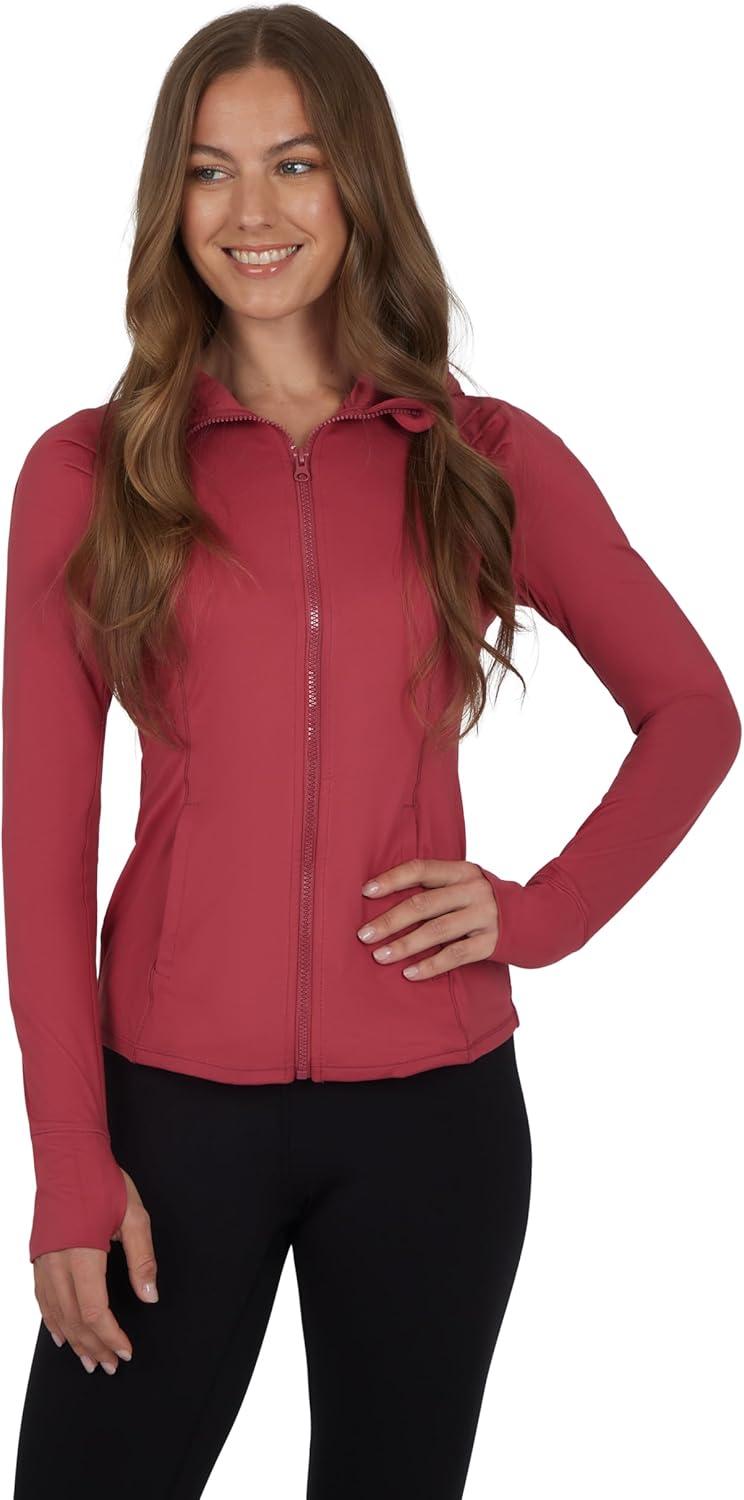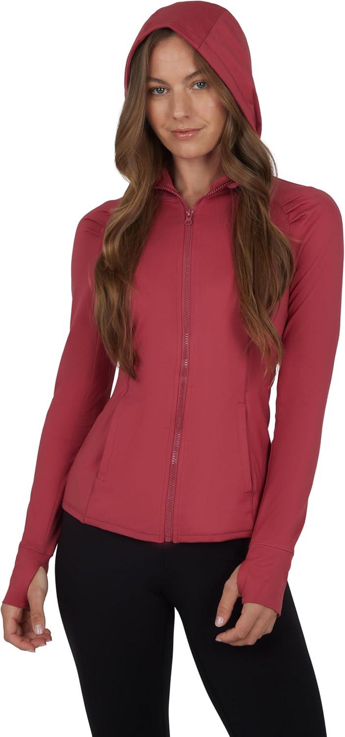 imageYogalicious FullZip Lightweight Hooded Running Workout Yoga Lux Jacket with PocketsEarth Red