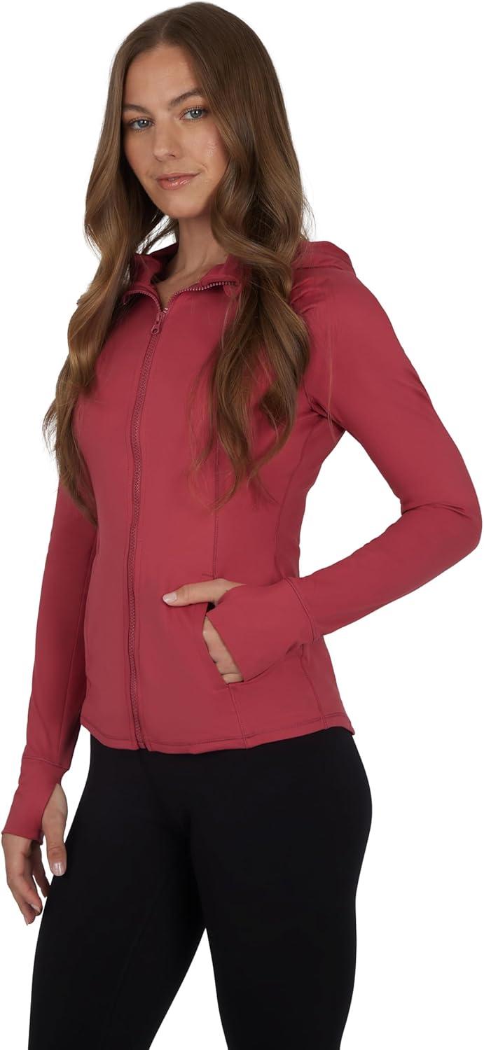 Yogalicious Full-Zip Lightweight Hooded Running Workout Yoga Lux Jacket with Pockets(Earth Red)