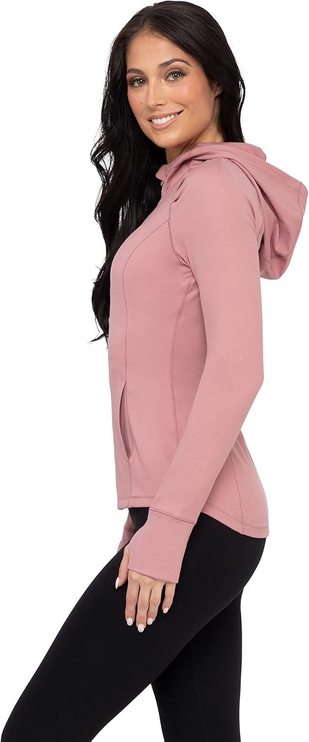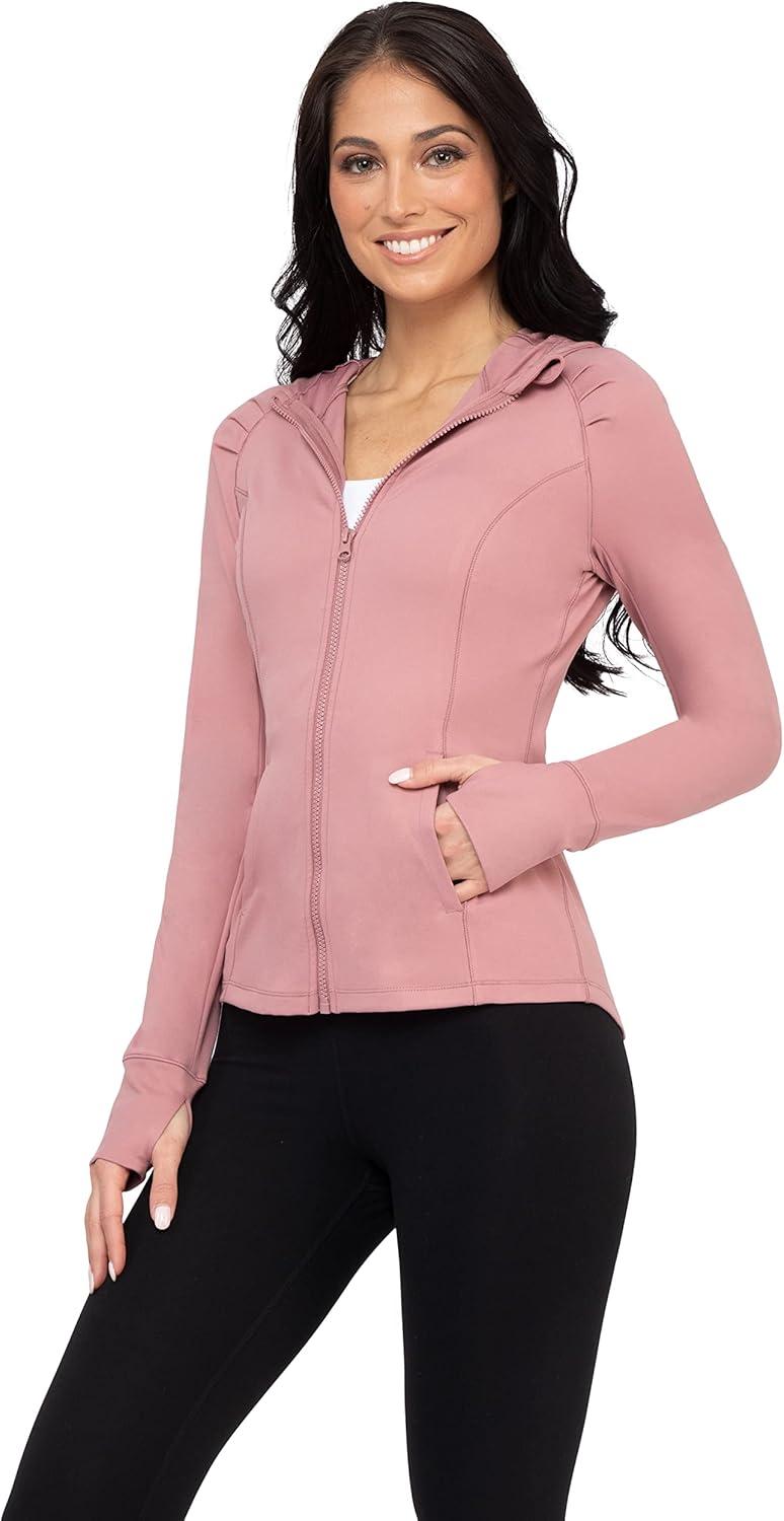 imageYogalicious FullZip Lightweight Hooded Running Workout Yoga Lux Jacket with PocketsNostalgia Rose