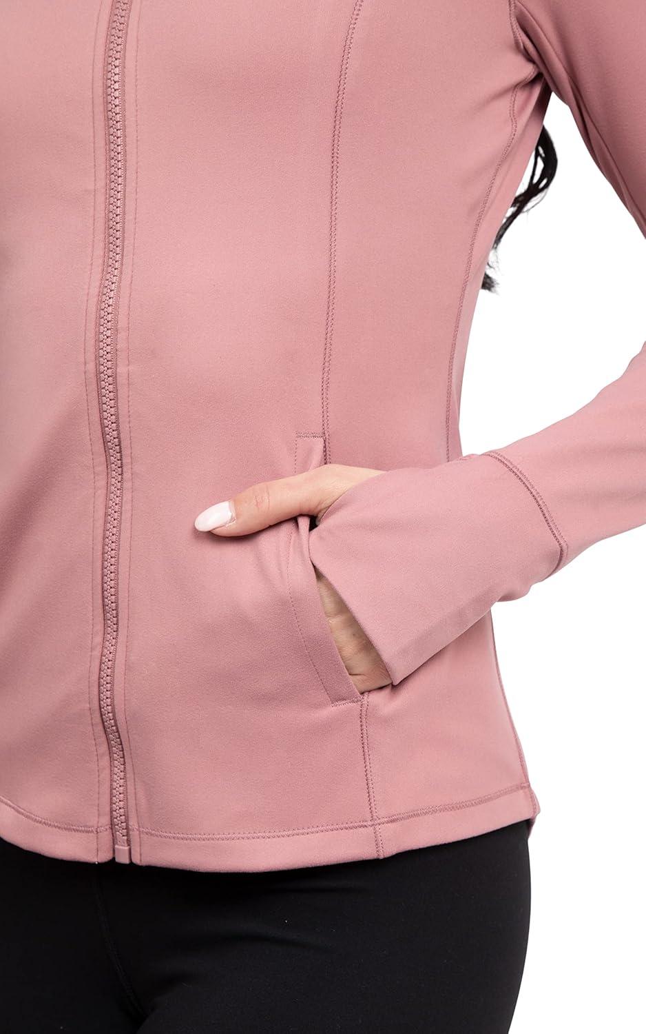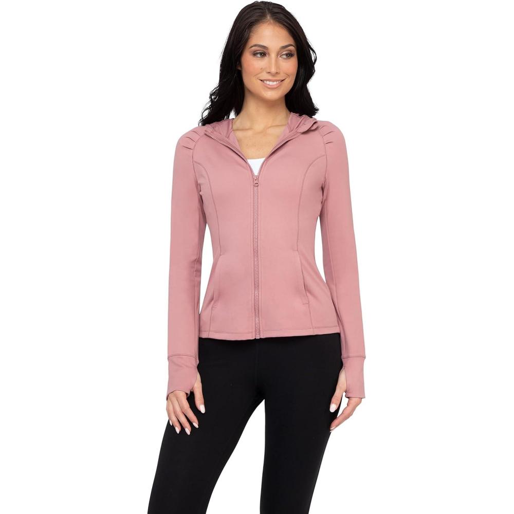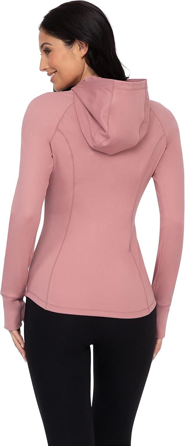 Yogalicious Full-Zip Lightweight Hooded Running Workout Yoga Lux Jacket with Pockets(Nostalgia Rose)
