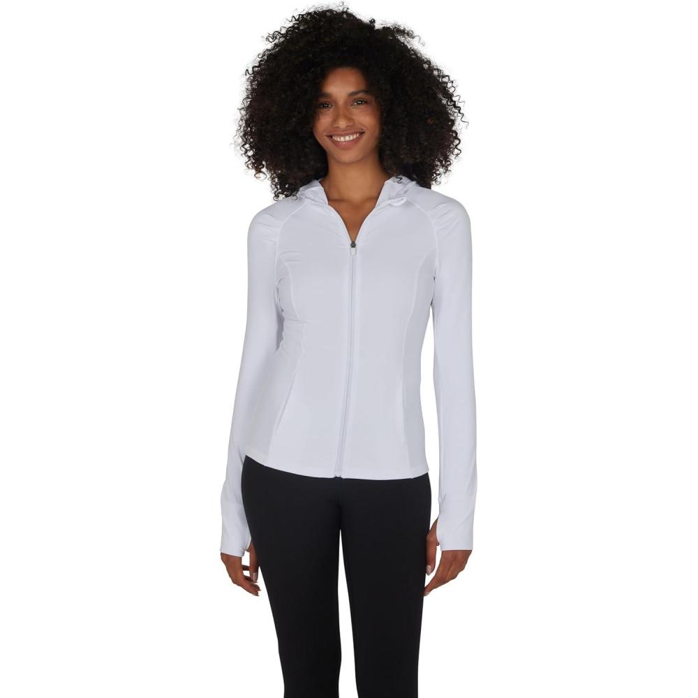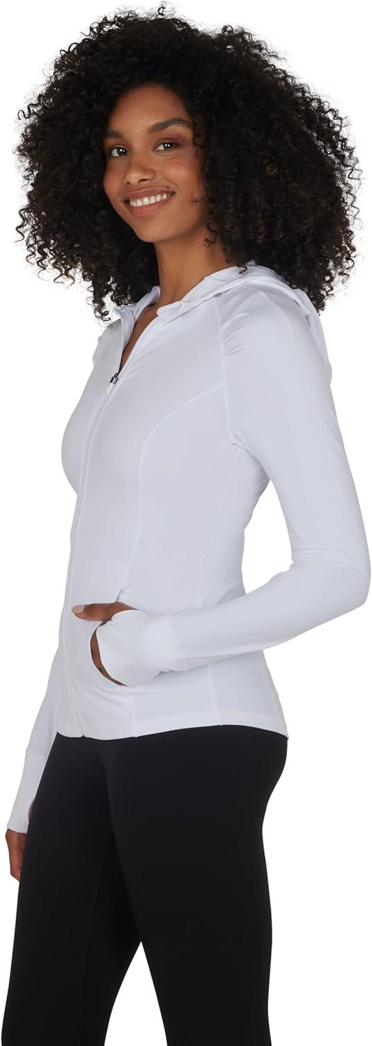 imageYogalicious FullZip Lightweight Hooded Running Workout Yoga Lux Jacket with PocketsWhite