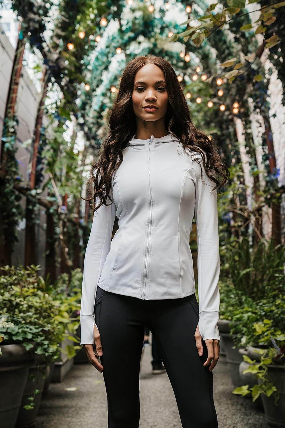 Yogalicious Full-Zip Lightweight Hooded Running Workout Yoga Lux Jacket with Pockets(Wild Wind)
