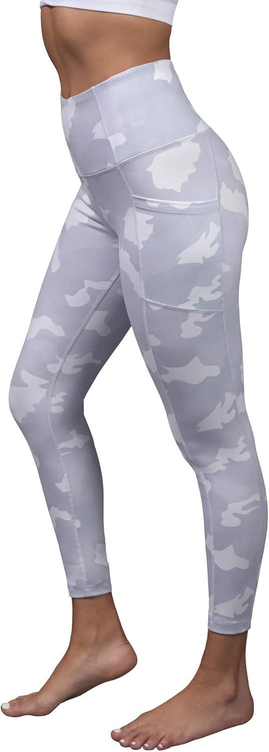 Yogalicious High Waist Ultra Soft 7/8 Ankle Length Leggings with Pockets for Women(White Camo Lux)