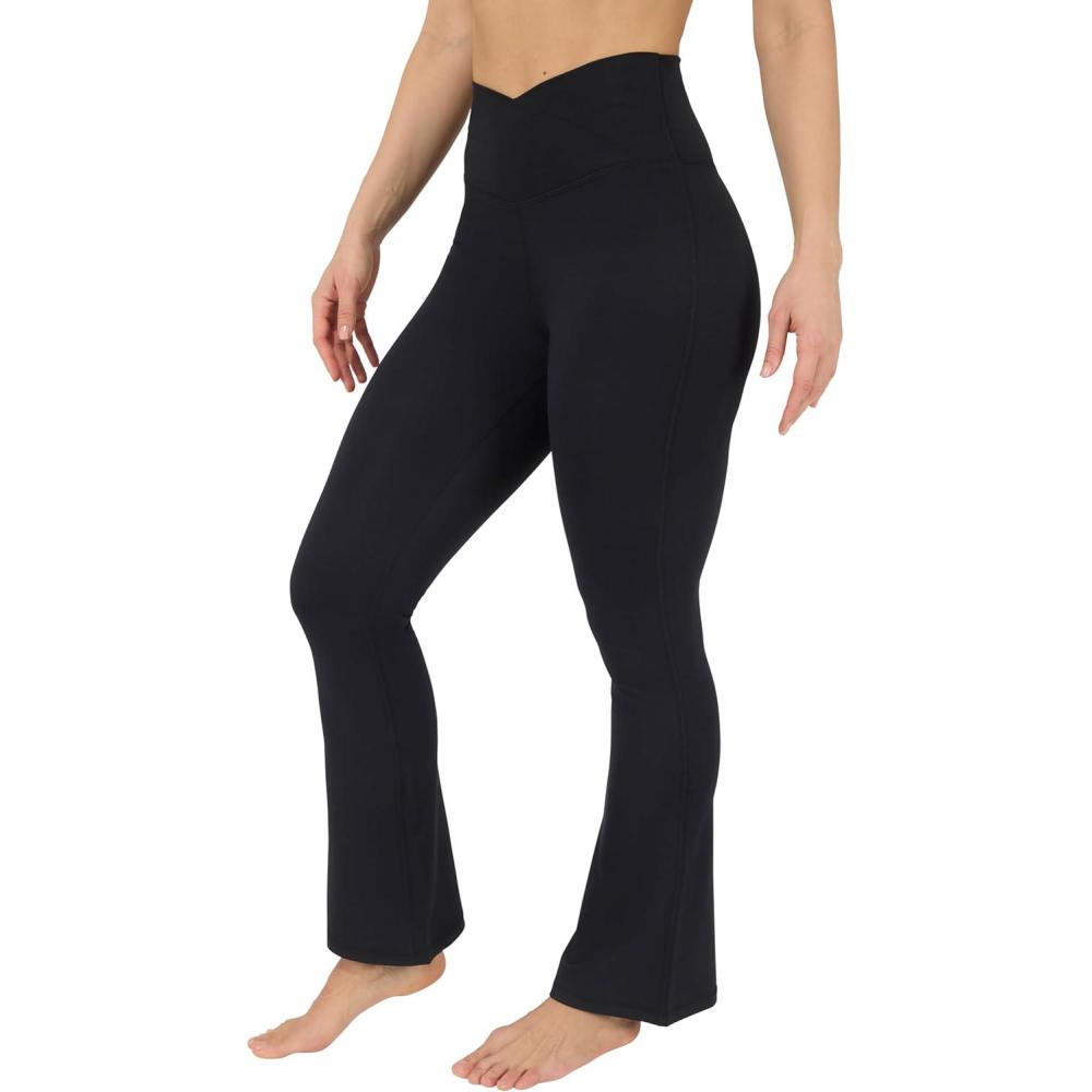Yogalicious Womens Crossover High Waisted Flare Legging Squat Proof Yoga Pant | 29" & 31.5" Inseam(Black 31.5")