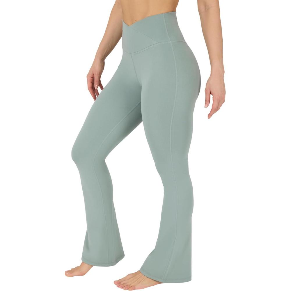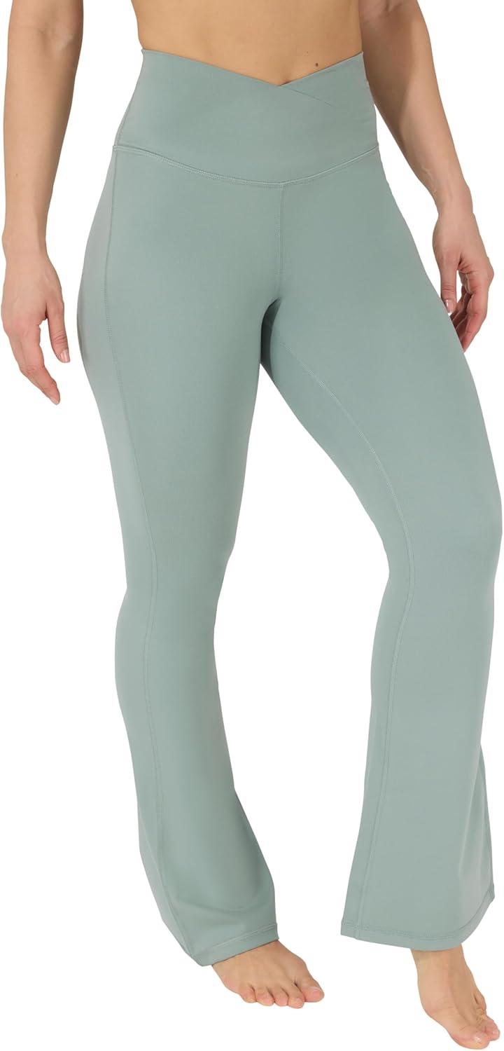 Yogalicious Womens Crossover High Waisted Flare Legging Squat Proof Yoga Pant | 29" & 31.5" Inseam(Clover 31.5")