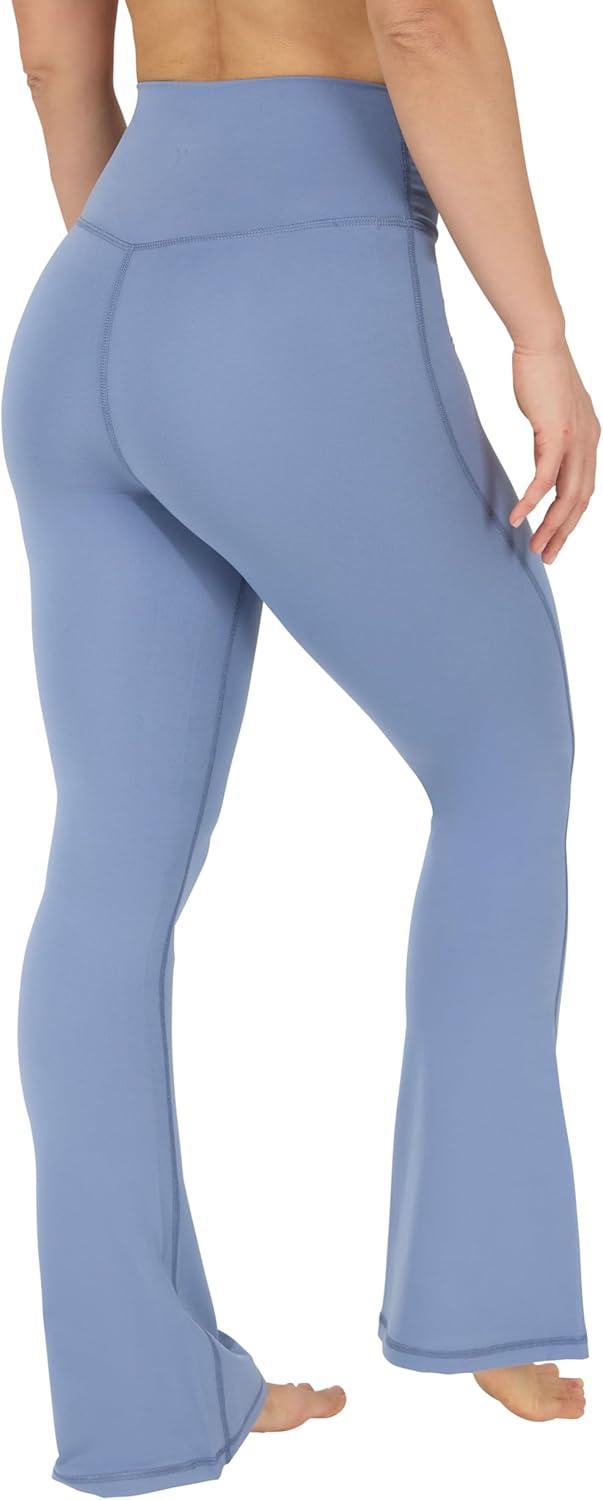 Yogalicious Womens Crossover High Waisted Flare Legging Squat Proof Yoga Pant | 29" & 31.5" Inseam(Symphony Blue 31.5")
