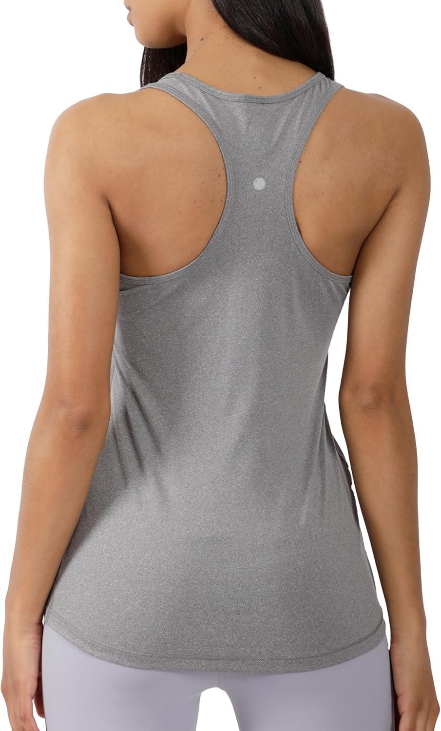 Yogalicious Womens Lightweight Tank Top Soft Racerback Workout Yoga Sleeveless Quick Dry Top(Htr Charcoal/Black)