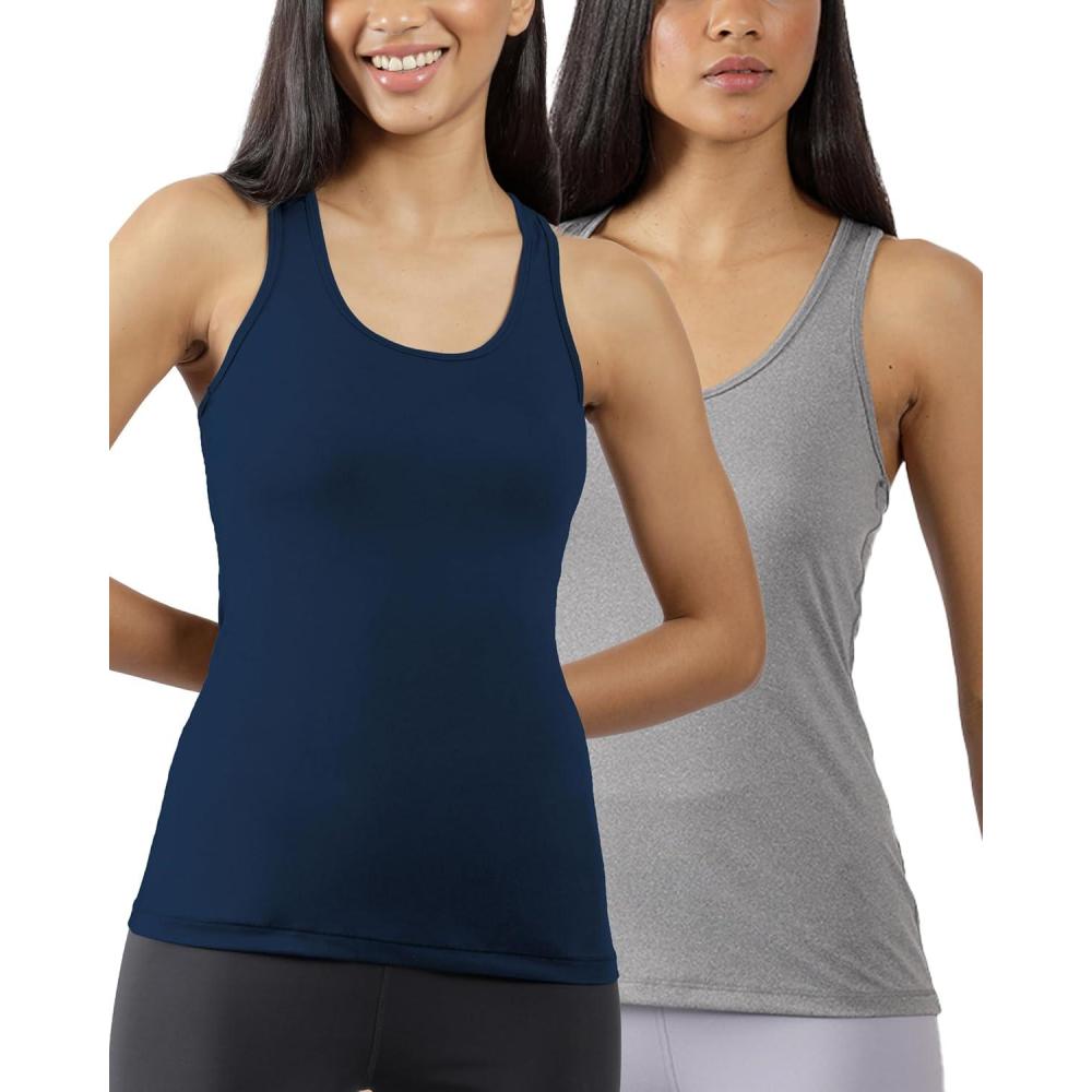 Yogalicious Womens Lightweight Tank Top Soft Racerback Workout Yoga Sleeveless Quick Dry Top(Dark Navy/Heather Grey)