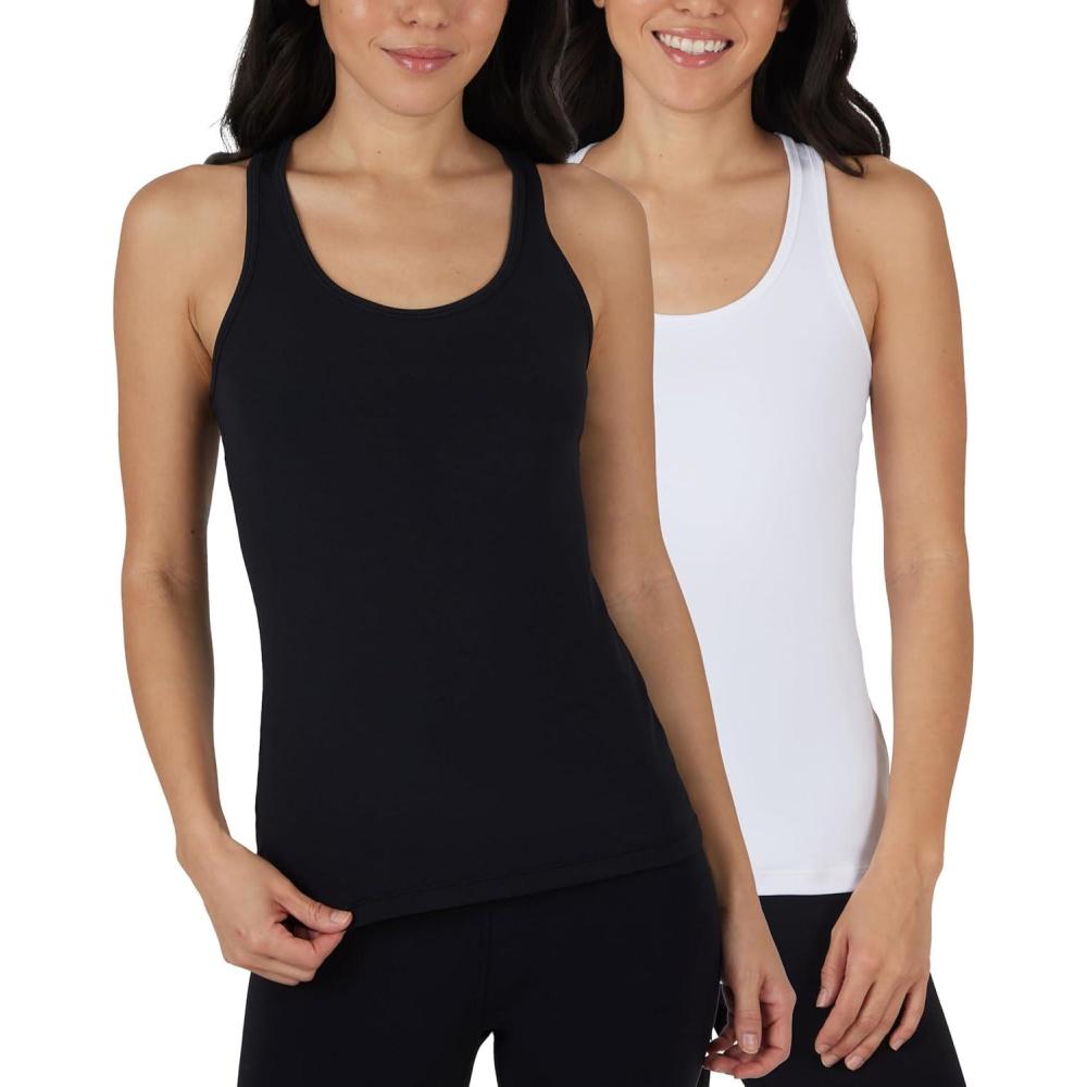 imageYogalicious Womens Lightweight Tank Top Soft Racerback Workout Yoga Sleeveless Quick Dry TopWhiteBlack
